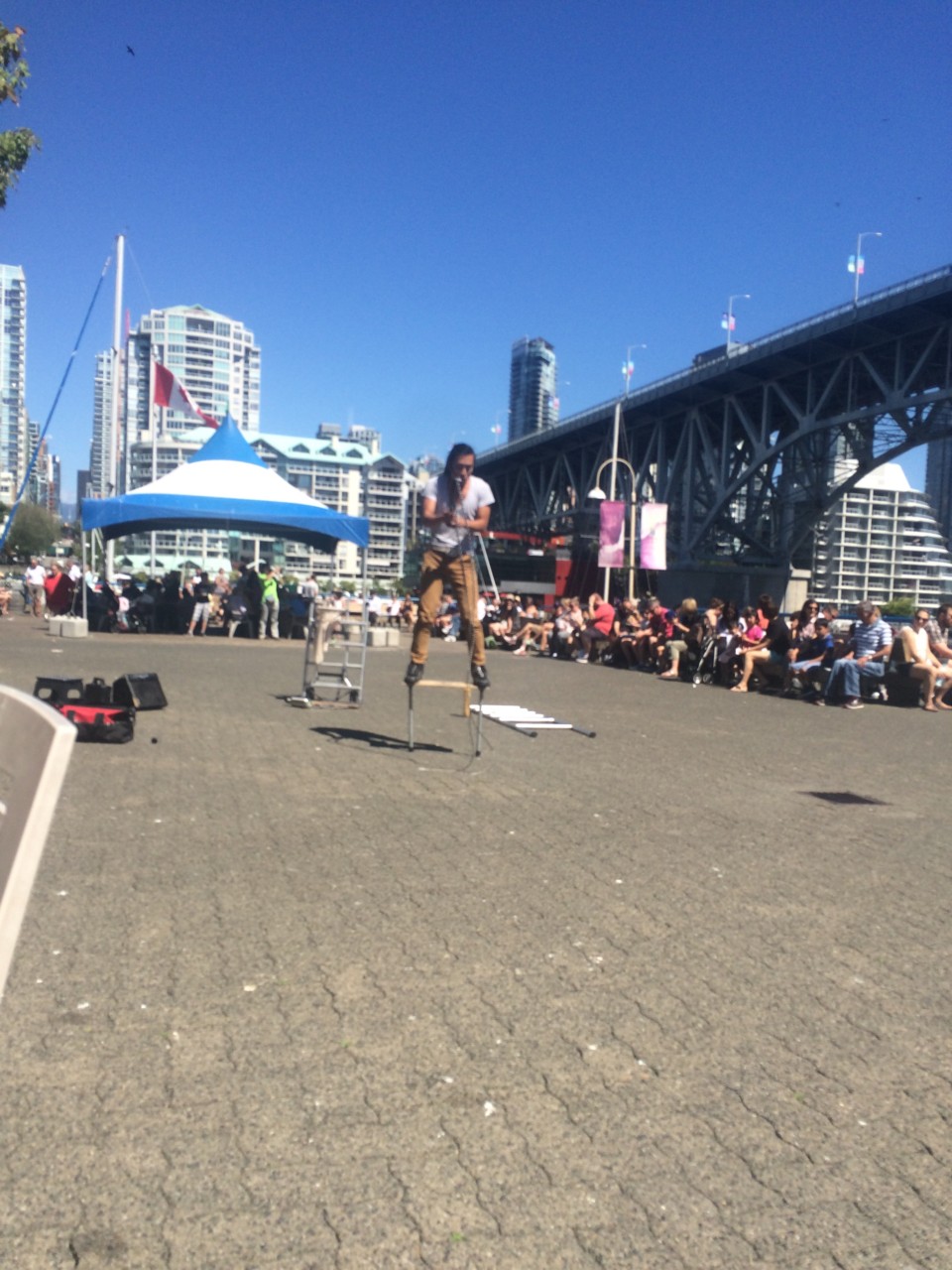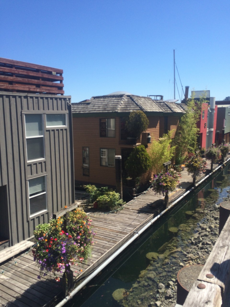 13 08 2016Gestern statteten wir nach dem Frühstück mit unserer Hostelgruppe der zweitgrößten Touristenattraktion Kanadas einen Besuch ab: Granville Island. Diese kleine Halbinsel befindet sehr zentrumsnah und steht vor allem für die alternative und kulturelle Szene der Metropole. Über 10 Millionen Besucher strömen jährlich auf diese zu Beginn des 20.Jh. errichtete Betoninsel. Unser Hostelguide führte uns einmal um die gesamte Insel und gab uns dabei zahlreiche Information über diesen Künstlerfleck. So kamen wir beispielsweise an schwimmenden Häusern vorbei, erklommen den Trash Mountain (Müllberg) und besuchten den Farmersmarket, wo regionale Händler allerlei Köstlichkeiten verkaufen. Wir probierten an einem Stand einer Schnapsbrennerei ein paar hochprozentige Spezialitäten.