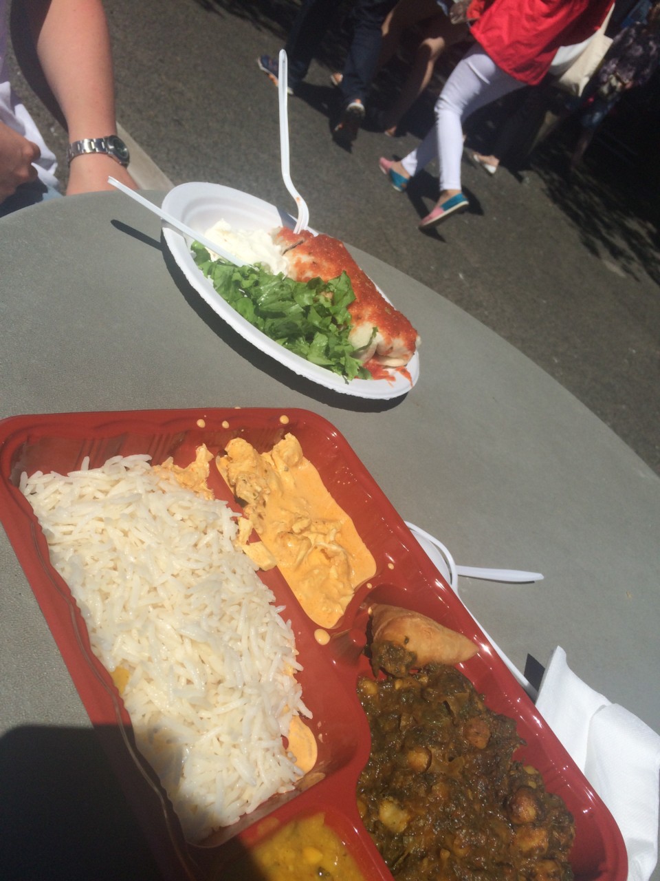 Zum Mittagessen fanden wir eine große Auswahl an Gerichten vor. Am Ende entschieden wir uns für einen mexikanischen Burrito sowie indischem Hühnchen. Nebenbei unterhielt uns ein Kleinkünstler mit einer ziemlich guten Show.