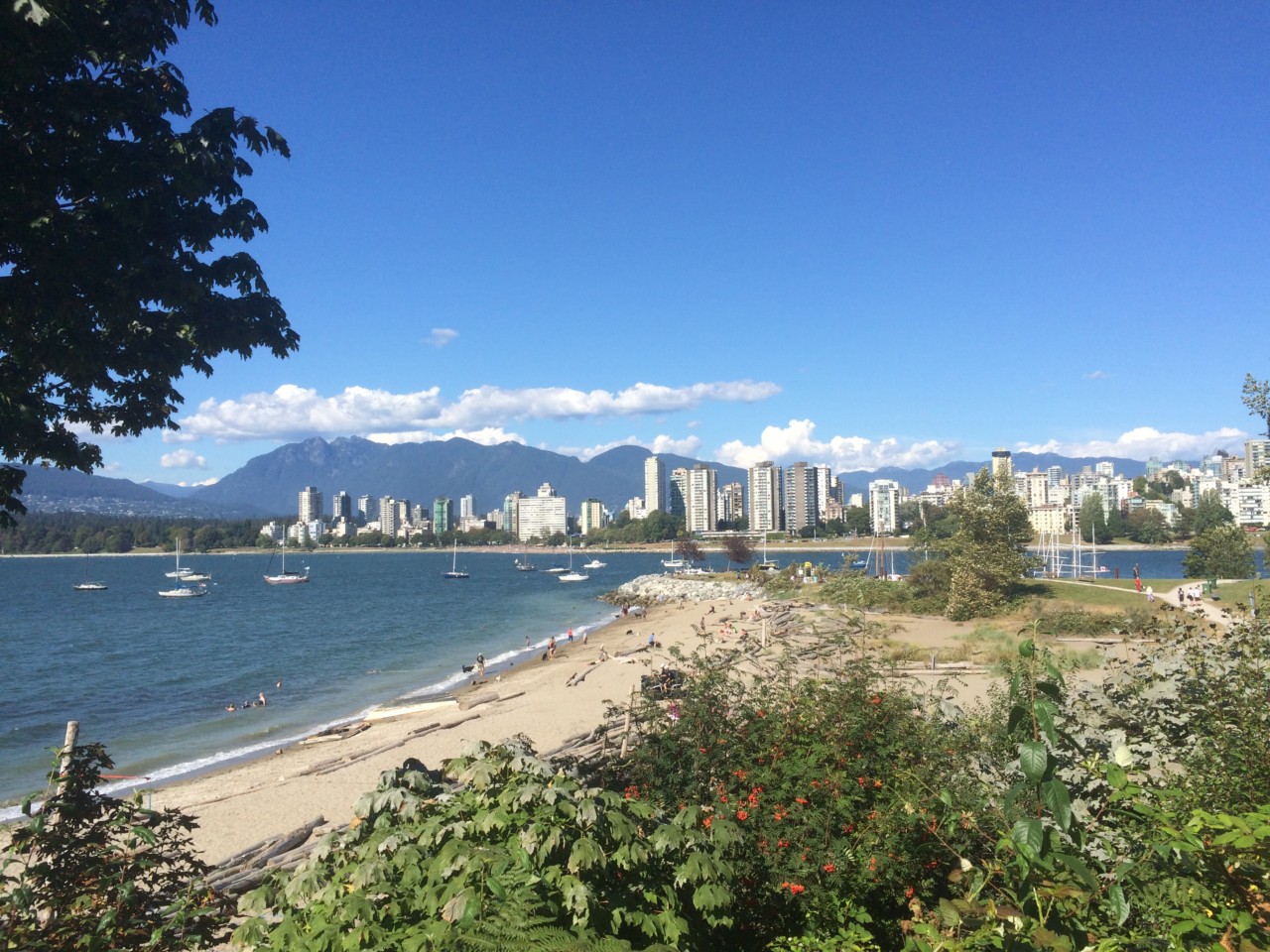 Nachdem wir uns mit unserer Gruppe noch ein kühles Getränk gönnten, zogen wir weiter Richtung Kitsilano Beach. Wir liefen dorthin an einem schönen Küstenweg entlang, wobei wir eine herrliche Sicht auf die Skyline hatten. Der Strand an sich haute uns dann leider nicht so ganz vom Hocker. Wir sind aber jetzt auch einfach schon zu verwöhnt von den australischen Stränden:)