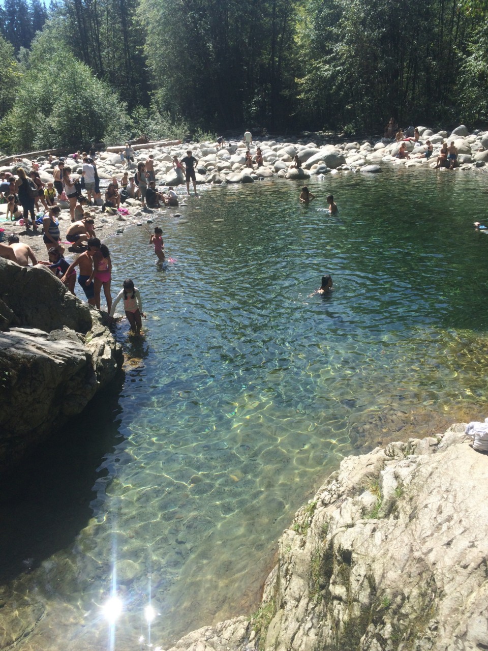 Am heutigen Freitag stand für uns die letzte Hostelaktivität auf dem Plan: Ausflug ins Lynn Valley. Dort unternahmen wir einen 5km Rundgang, der nicht allzu anspruchsvoll war. Am Ende überredeten wir unsere Gruppenführerin noch zur Hängebrücke weiter zu laufen. Zuvor machten wir noch Halt an einem kleinen Bergsee, wo man auch von den Klippen ins kühle Nass springen konnte. Der Gang über die Brücke war dann anschließend eher was für Schwindelfreie.